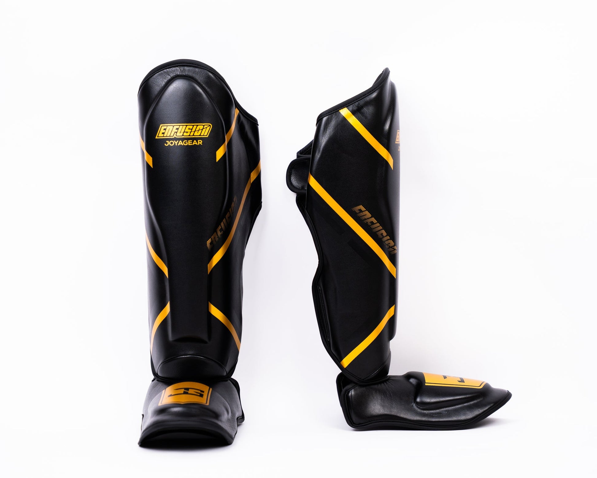 De Joya X Enfusion Trilogy Scheenbeschermers zijn handgemaakt in Thailand van hoogwaardig en duurzaam materiaal voor ultieme prestaties. Deze scheenbeschermers zijn ontworpen voor maximale bescherming, terwijl ze lichtgewicht blijven voor optimale wendbaarheid en beweging. Ze zijn voorzien van een heat-pressed Trilogy-print en Click System riemen op de achterkant voor een stevige en comfortabele pasvorm. Deze scheenbeschermers combineren stijl en functionaliteit.